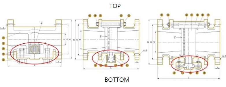 ┼ La válvula SWING CHECK es aplicable a tuberías verticales / horizontales porque funciona sobre el eje, pero si la tubería está inclinada o torcida, puede ser difícil el funcionamiento normal.