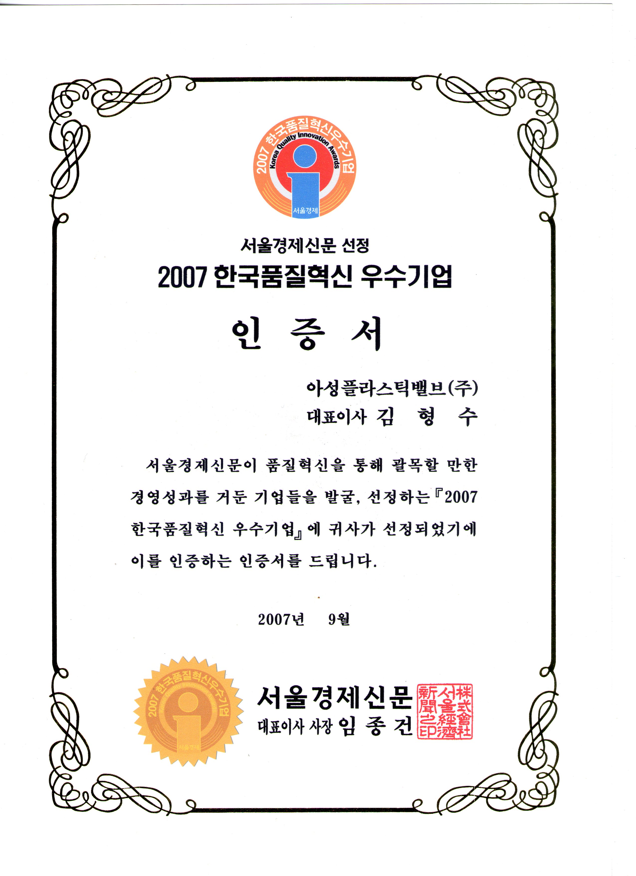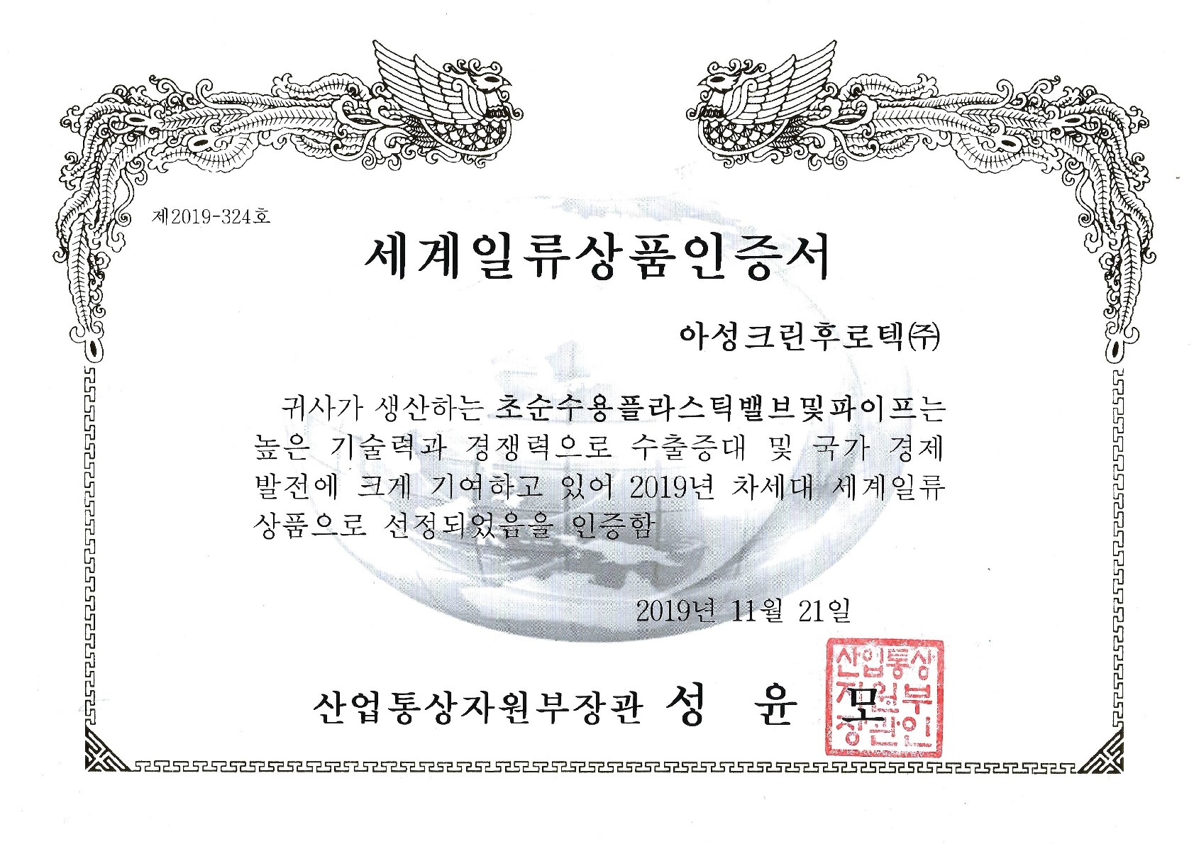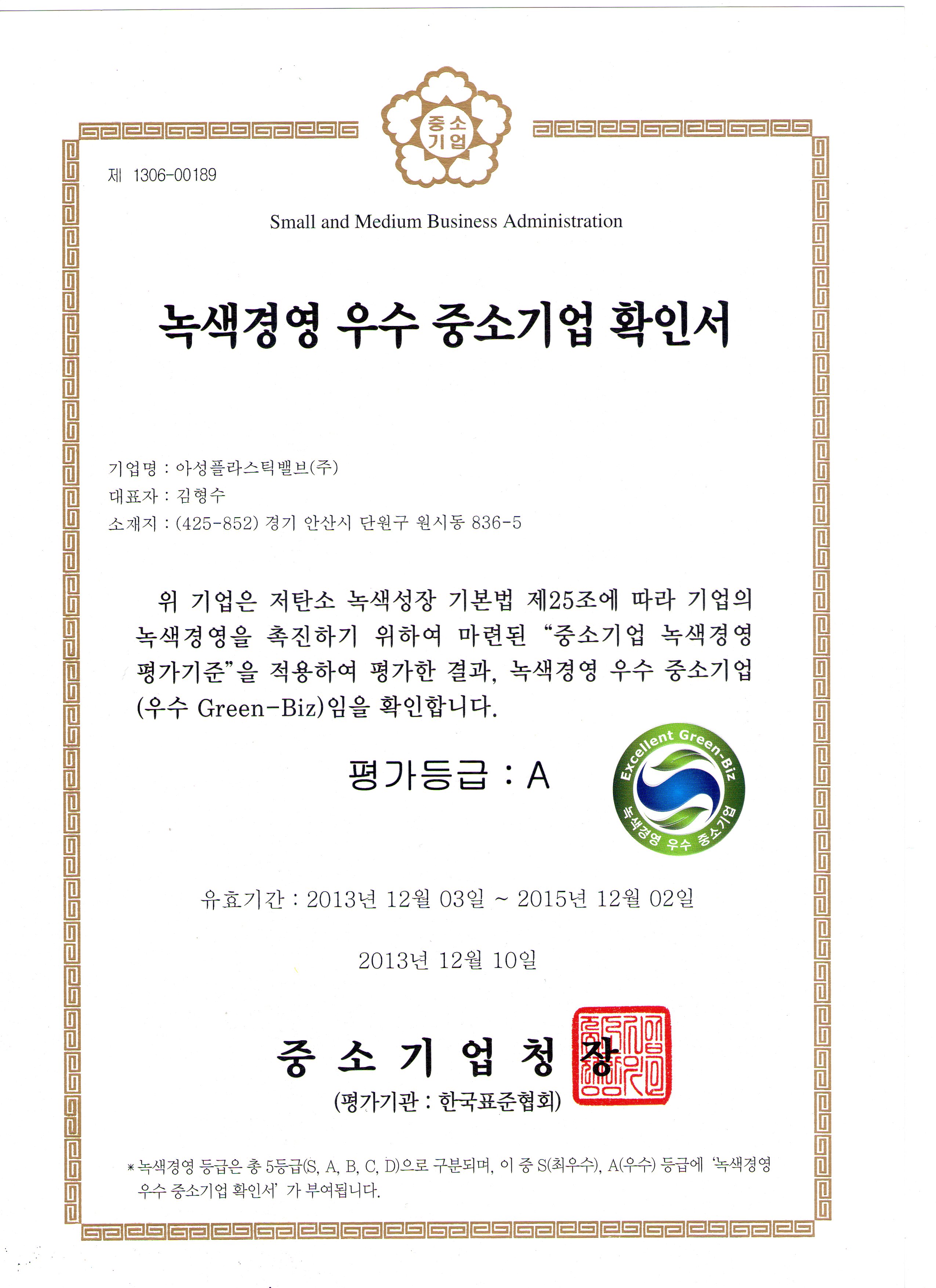 인증서 ISO 9001 인증서 영문 (아성플라스틱밸브) ISO 9001 인증서 국문 (아성플라스틱밸브) ISO 14001 인증서 영문 (아성플라스틱밸브) ISO 14001 인증서 국문 (아성플라스틱밸브) ISO 45001 인증서 국문 (아성플라스틱밸브) ISO 45001 인증서 영문 (아성플라스틱밸브) GREEN-BIZ 확인서 (영문) AEO 인증 2019 차세대 일류상품 CP자율준수무역거래자 인증서(영문) (아성플라스틱밸브(주)) CP자율준수무역거래자 인증서(아성플라스틱밸브(주)) GREEN-BIZ 확인서 (한글) 품질혁신 우수기업 인증서